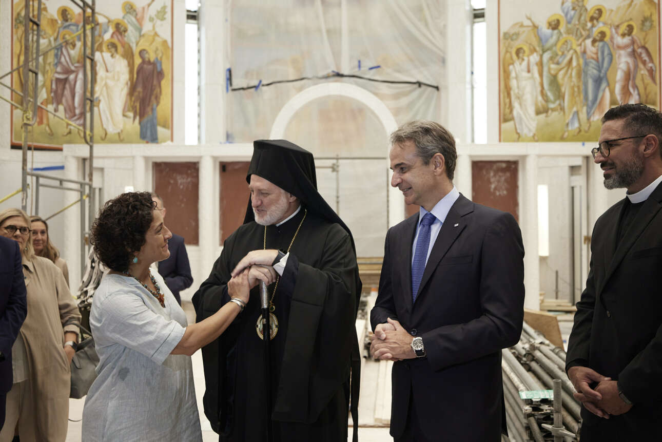 Τον Κυριάκο Μητσοτάκη και τη σύζυγό του υποδέχτηκε ο Αρχιεπίσκοπος Αμερικής Ελπιδοφόρος, ο οποίος τους ξενάγησε στον χώρο, ενώ ο αρχιτέκτονας που έχει σχεδιάσει τον νέο ναό, Σαντιάγο Καλατράβα, εξήγησε το σχέδιο έως την τελική περάτωση του έργου.