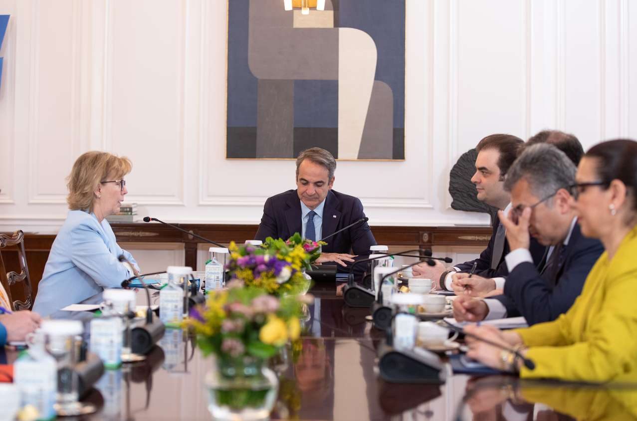 Την Επίτροπο Χρηματοοικονομικών Υπηρεσιών και Ενωσης Αποταμιεύσεων και Επενδύσεων της ΕΕ, Μαρία Λουί Αλμπουκέρκ (Maria Luís Albuquerque), υποδέχθηκε την Πέμπτη στο Μέγαρο Μαξίμου ο Πρωθυπουργός Κυριάκος Μητσοτάκης.