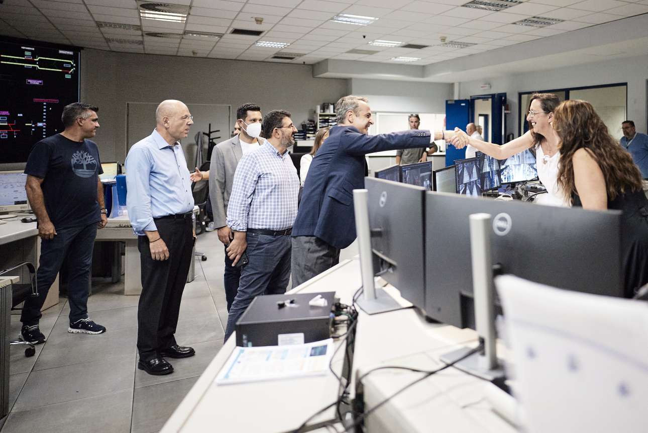Επιπρόσθετα ο Πρωθυπουργός συνομίλησε με εργαζόμενους στο κέντρο ελέγχου και ευχαρίστησε το προσωπικό όλων των μέσων μεταφοράς για τη στήριξή του στην επέκταση του ωραρίου λειτουργίας τα Σάββατα, με στόχο την ασφαλή μετακίνηση επιβατών τις νυχτερινές ώρες.