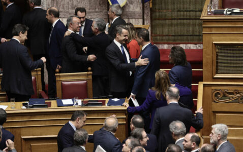 Μετά το τέλος της συζήτησης στη Βουλή για τον Προϋπολογισμό, ο Κυριάκος Μητσοτάκης επισκέφτηκε την αίθουσα των κοινοβουλευτικών συντακτών.
