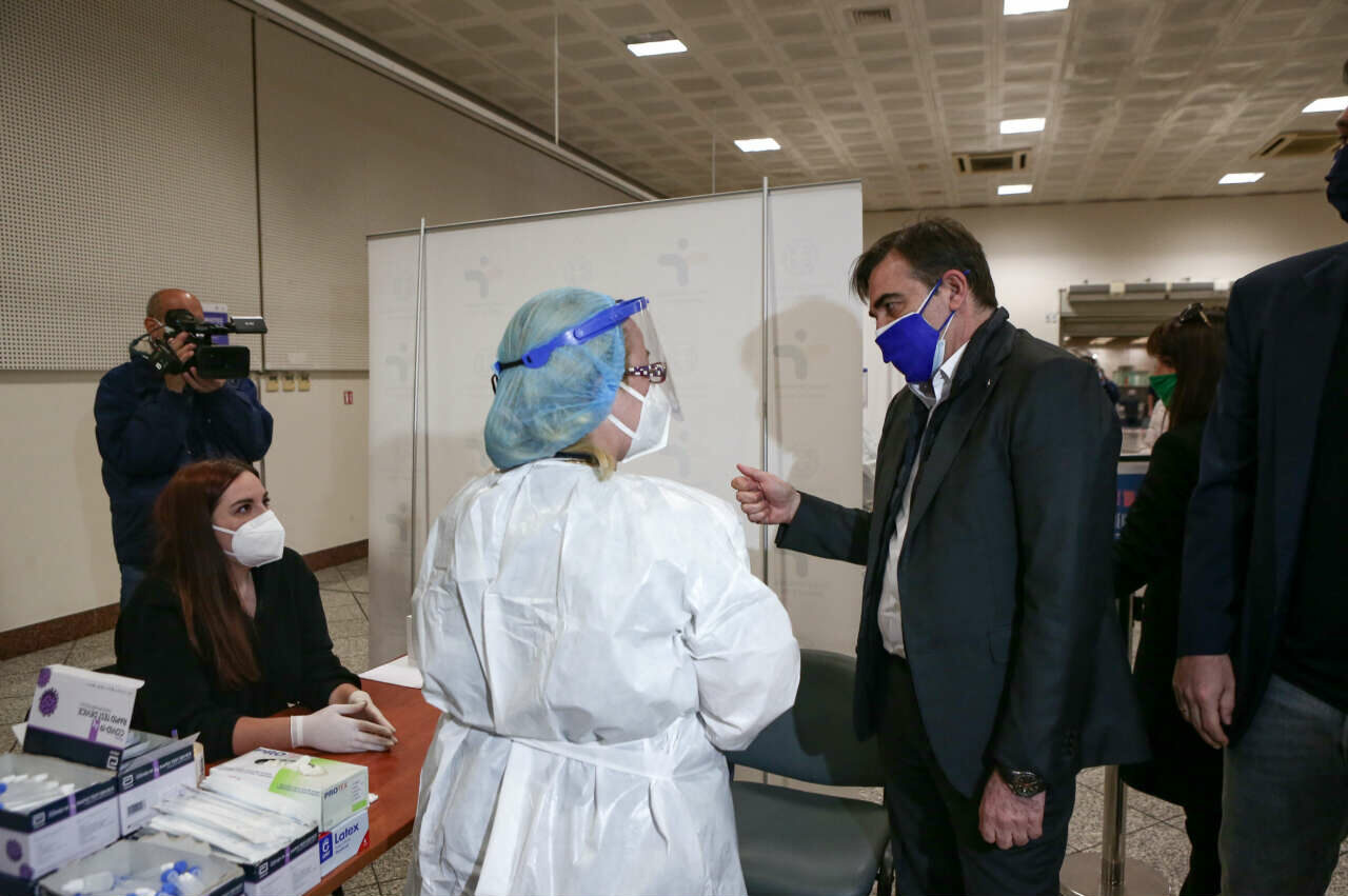 Επίσκεψη στις Κινητές Ομάδες Υγείας (ΚΟΜΥ) του ΕΟΔΥ που πραγματοποιούν δωρεάν δειγματοληπτικούς ελέγχους στην πλατεία Συντάγματος πραγματοποίησαν το μεσημέρι της Κυριακής ο υπουργός Υγείας Βασίλης Κικίλιας που συνοδευόταν από τον αντιπρόεδρο της Ευρωπαϊκής Επιτροπής Μαργαρίτη Σχοινά και τον πρόεδρο του Εθνικού Οργανισμού Δημόσιας Υγείας Παναγιώτη Αρκουμανέα.