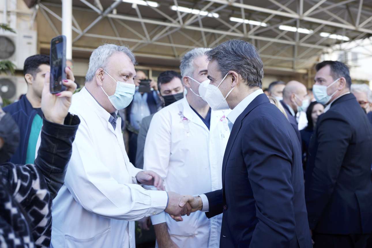 Ο Κυριάκος Μητσοτάκης είχε την ευκαιρία να συνομιλήσει με ιατρικό και νοσηλευτικό προσωπικό, το οποίο ευχαρίστησε για τη αδιάκοπη προσφορά του εν μέσω εργασιών.