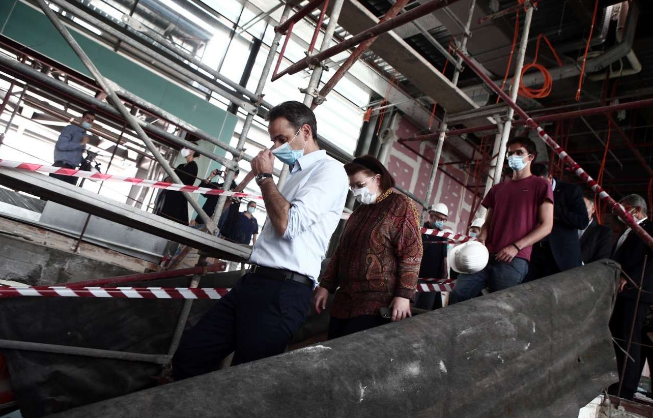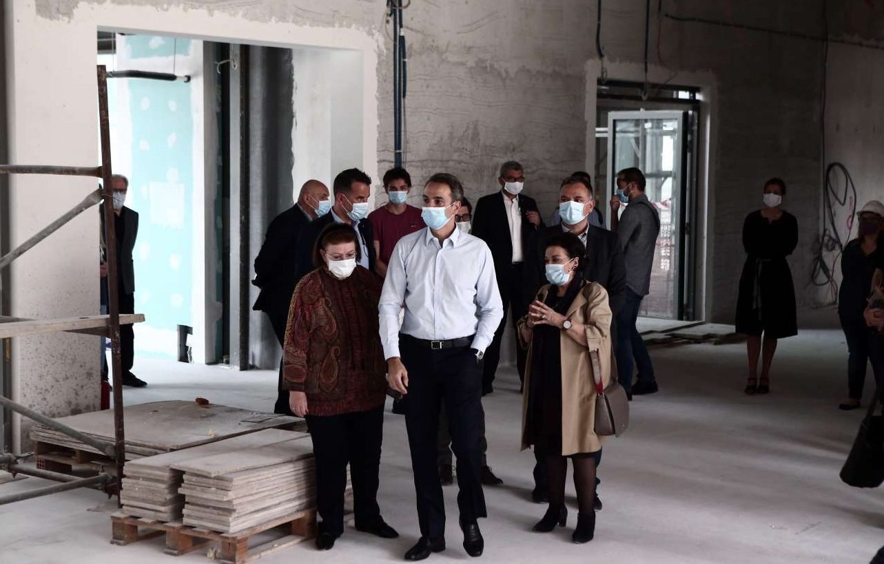 Ο Πρωθυπουργός, ο οποίος συνοδευόταν από την υπουργό Πολιτισμού Λίνα Μενδώνη, επιθεώρησε από κοντά την πορεία των εργασιών για το νέο σπίτι της Εθνικής Πινακοθήκης.