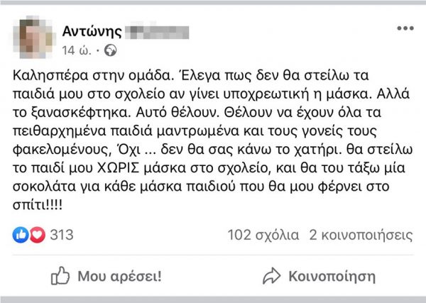 Στον εισαγγελέα ο φάκελος για τους γονείς-οπαδούς του «κανένα παιδί με μάσκα στο σχολείο»
