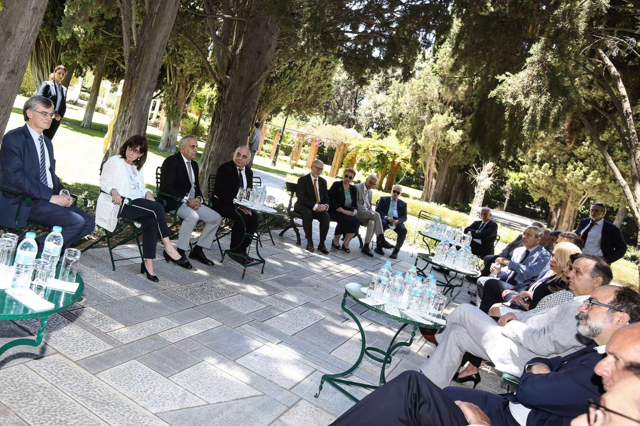 Στον κήπο του Προεδρικού Μεγάρου προσκάλεσε η Πρόεδρος της Δημοκρατίας Κατερίνα Σακελλαροπούλου τα 30 μέλη της ad hoc επιτροπής για την αντιμετώπιση της Covid-19. Η κυρία Σακελλαροπούλου συζήτησε με τον πρόεδρο της επιτροπής Παναγιώτη Πρεζεράκο, με τον καθηγητή Λοιμωξιολογίας Σωτήρη Τσιόδρα και τους άλλους κορυφαίους επιστήμονες της επιτροπής για τη μέχρι τώρα εμπειρία τους, αλλά και για τα επόμενα βήματα για την προστασία της δημόσιας υγείας εν όψει του ανοίγματος των συνόρων.