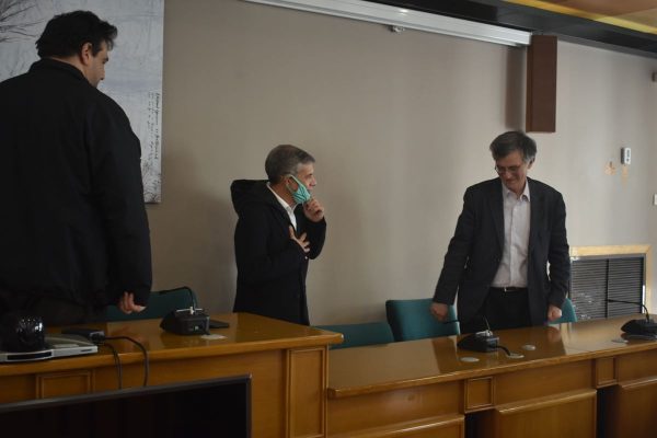 Ο κ. Χαρδαλιάς, με τον κ. Λιβάνιο και τον κ. Τσιόδρα, καθώς και τους υπόλοιπους συμμετέχοντες στο κλιμάκιο, είχαν διαδοχικές συσκέψεις με τον περιφερειάρχη Θεσσαλίας Κωνσταντίνο Αγοραστό και τον δήμαρχο Λάρισας Απόστολο Καλογιάννη (κάτω φωτογραφίες από τη σύσκεψη στην Περιφέρεια), ενώ στη συνέχεια επρόκειτο να συναντηθούν με εκπροσώπους της κοινότητας των Ρομά, καθώς και με τους επικεφαλής των μέτρων για την τήρηση της καραντίνας.