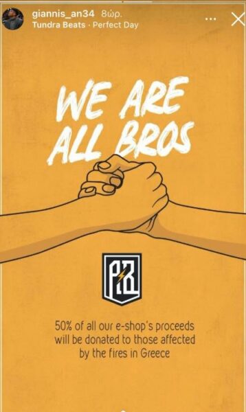 Στους πυρόπληκτους το 50% των εσόδων από το e-shop των Αντετοκούνμπο