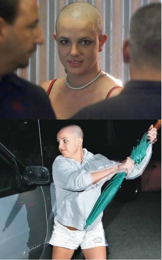 Toν Φεβρουάριο του 2007, η Σπίαρς «ξέφυγε» εντελώς: εμφανίστηκε δημοσίως με τελείως ξυρισμένο κεφάλι, καθώς όπως η ίδια είπε αργότερα, θέλησε να πετάξει απεγνωσμένα από πάνω της την εικόνα του «συμβόλου του σεξ» που κάποιοι άλλοι της φόρτωσαν όταν εκείνη ήταν 18 ετών.
