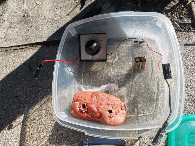 Ο αυτοσχέδιος εκρηκτικός μηχανισμός ( φωτογραφία κάτω), εντοπίστηκε λίγα λεπτά αργότερα στην οδό Κοκκινοπούλου, έξω από την έδρα των ΜΑΤ, και όπως διαπιστώθηκε, είχε τοποθετηθεί μέσα σε τάπερ. Η βόμβα ήταν ενεργή.
