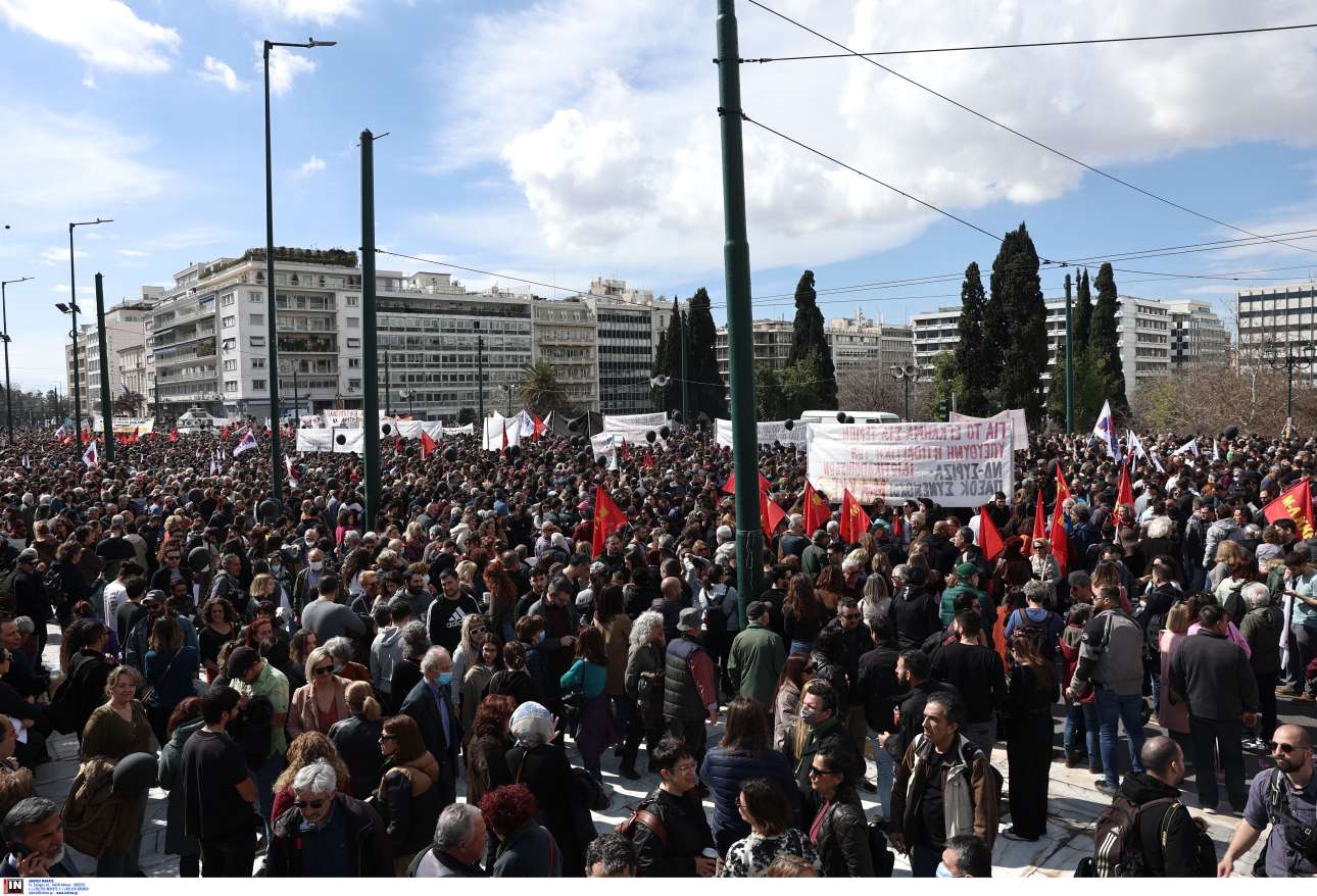 Σύνταγμα: Χιλιάδες κόσμου στο συλλαλητήριο για τα Τέμπη