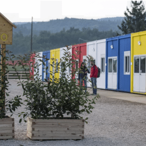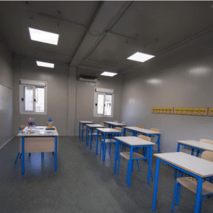 Το νέο σχολείο είναι νηπιαγωγείο και δημοτικό και έχει 10 τάξεις φτιαγμένες από κοντέινερ. Απ΄έξω είναι πολύχρωμο, με μικρή παιδική χαρά, λίγο πράσινο και μία ξύλινη πρόσοψη που το κάνει να φαίνεται περισσότερο σαν κτίσμα και λιγότερο σαν παράγκα.