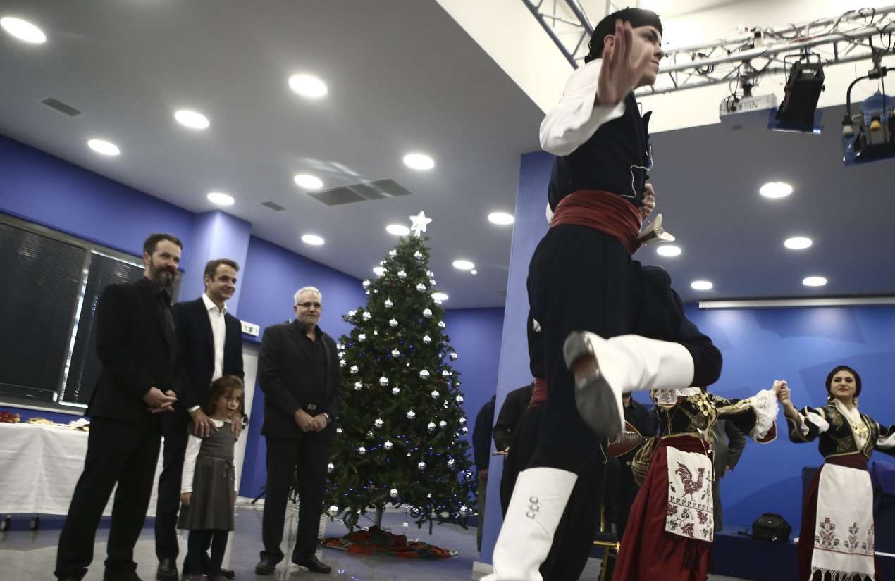 Τα πρωτοχρονιάτικα κάλαντα άκουσε ο Κυριάκος Μητσοτάκης στα κεντρικά γραφεία της Νέας Δημοκρατίες στην οδό Πειραιώς.