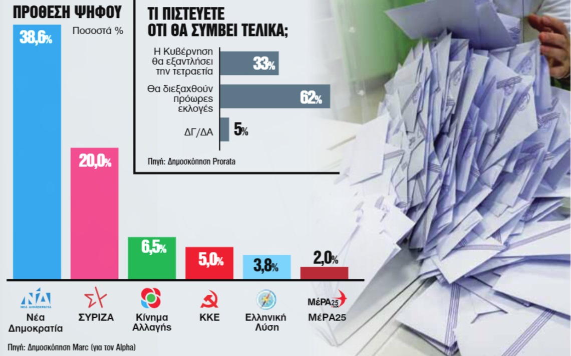 Τα συμπεράσματα δύο δημοσκοπήσεων: Μεγάλη διαφορά της κυβέρνησης, παρά τη φθορά
