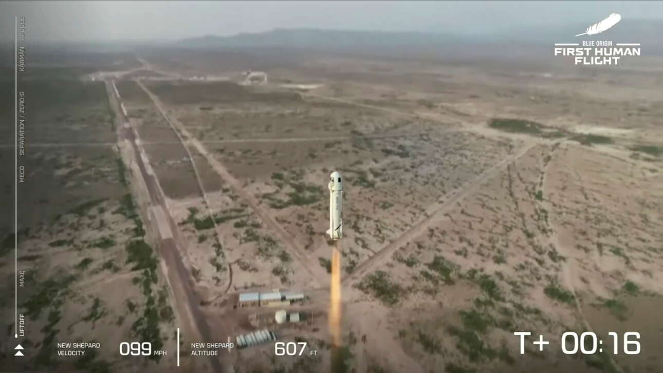 Το όχημα New Shepard της εταιρείας του Μπέζος Blue Origin εκτοξεύτηκε την Τρίτη το μεσημέρι (ώρα Ελλάδος) για μια σύντομη υποτροχιακή πτήση. Η κάψουλα έφτασε σε ύψος αρκετό για να βιώσουν οι τέσσερις επιβαίνοντες συνθήκες έλλειψης βαρύτητας για τέσσερα λεπτά.