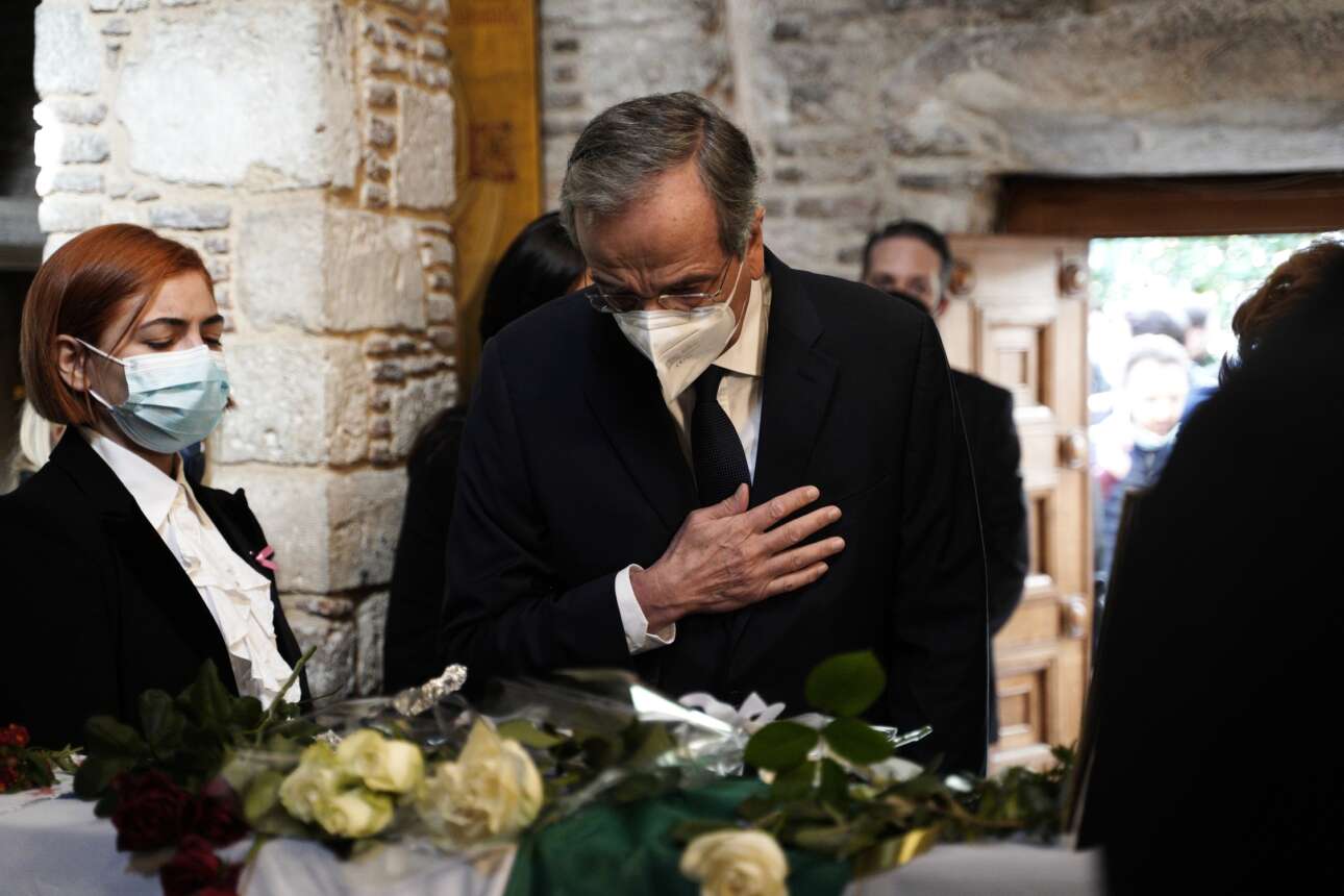 Στο παρεκκλήσι της Μητρόπολης εμφανίστηκε το μεσημέρι και ο πρώην Πρωθυπουργός Αντώνης Σαμαράς, με τη σύζυγό του Γεωργία.