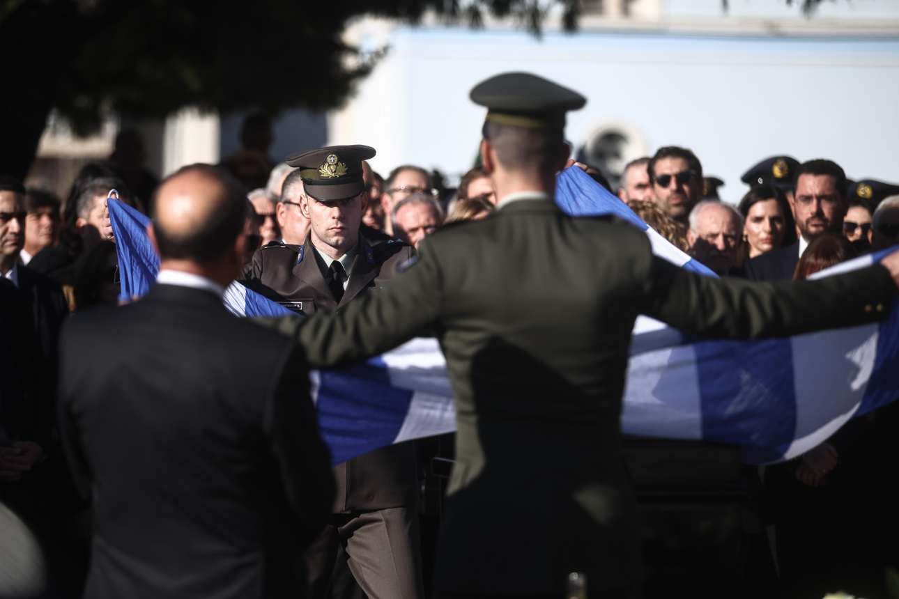 Τρία αγήματα απέδωσαν στρατιωτικές τιμές, ενώ λίγο πριν από την ταφή απομακρύνθηκε από το φέρετρο η ελληνική σημαία που το κάλυπτε, η οποία παρεδόθη στην οικογένεια του πρώην πρωθυπουργού από αξιωματικούς του στρατού.