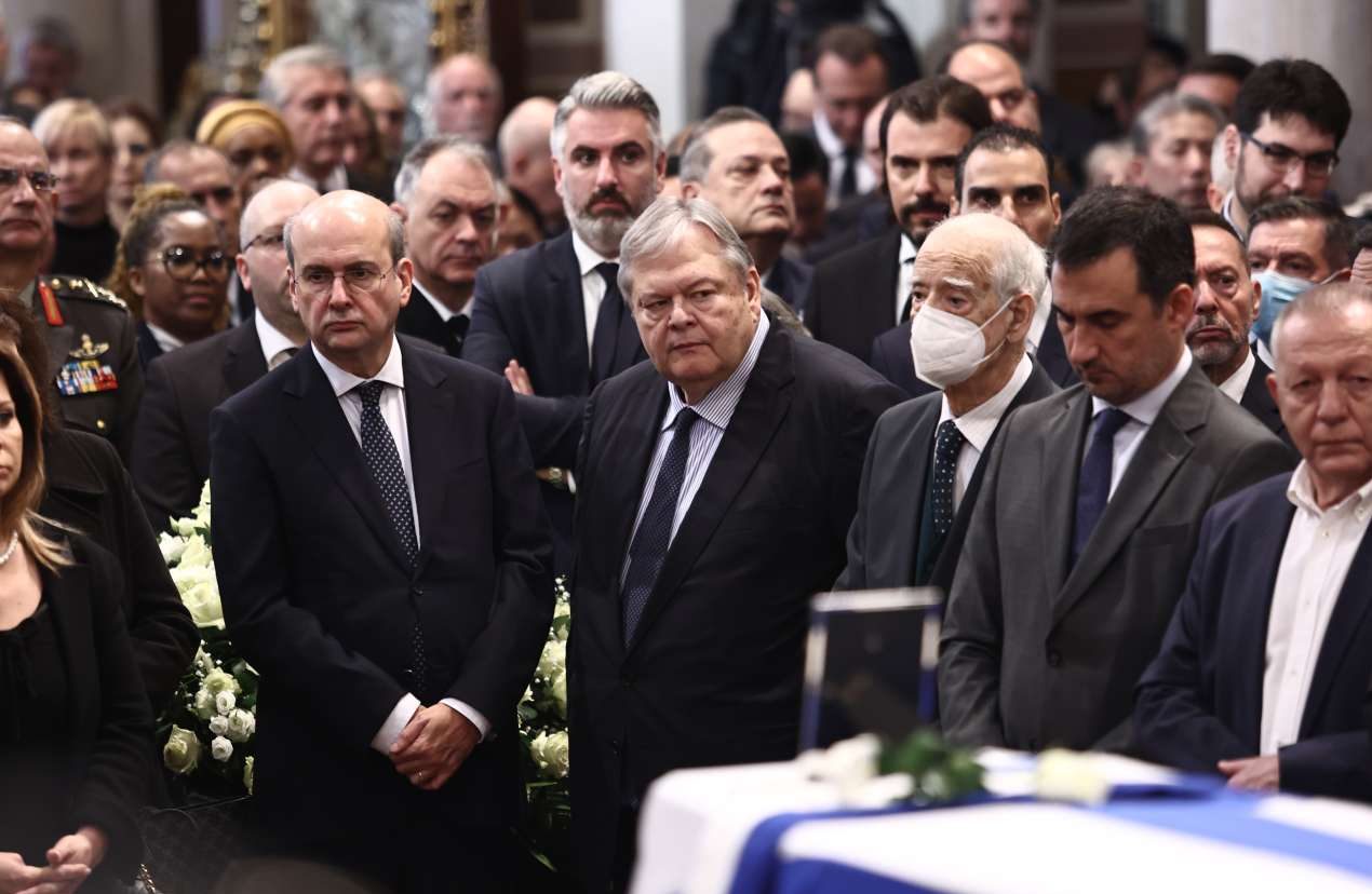 Παρόντες στην εξόδιο ακολουθία, η Πρόεδρος της Δημοκρατίας, Κατερίνα Σακελλαροπούλου και ο Πρόεδρος της Κυπριακής Δημοκρατίας, Νίκος Χριστοδουλίδης, ο Πρωθυπουργός, Κυριάκος Μητσοτάκης και δέκα υπουργοί της κυβέρνησης, ο πρόεδρος του ΠΑΣΟΚ, Νίκος Ανδρουλάκης με σύσσωμη την Κοινοβουλευτική Ομάδα του κόμματος, μαζί με τα μέλη του του Πολιτικού Συμβουλίου και του Πολιτικού Κέντρου του κινήματος, οι πρόεδροι του ΣΥΡΙΖΑ και της Νέας Αριστεράς, Σωκράτης Φάμελλος και Νίκος Χαρίτσης, ο Ευάγγελος Βενιζέλος, ο Κώστας Λαλιώτης, η Γιάννα Αγγελοπούλου, ο διοικητής της Τραπέζης της Ελλάδος, Γιάννης Στουρνάρας, βουλευτές κ.α.