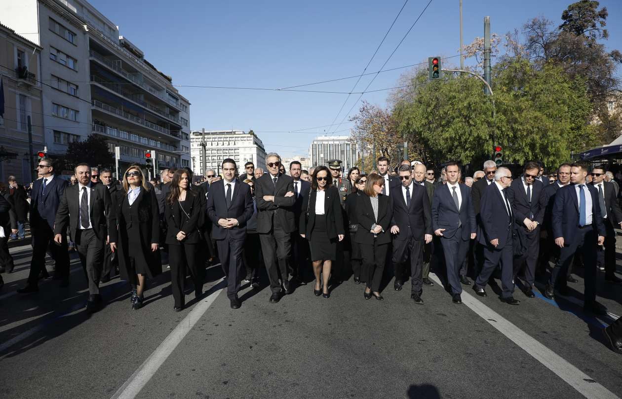 Συγγενείς και φίλοι, πολιτικοί συνοδοιπόροι και αντίπαλοι έδωσαν την Πέμπτη το «παρών» στη Μητρόπολη Αθηνών για το ύστατο χαίρε στον πρώην πρωθυπουργό και πρόεδρο του ΠΑΣΟΚ, Κώστα Σημίτη, που απεβίωσε την περασμένη Κυριακή σε ηλικία 88 ετών.