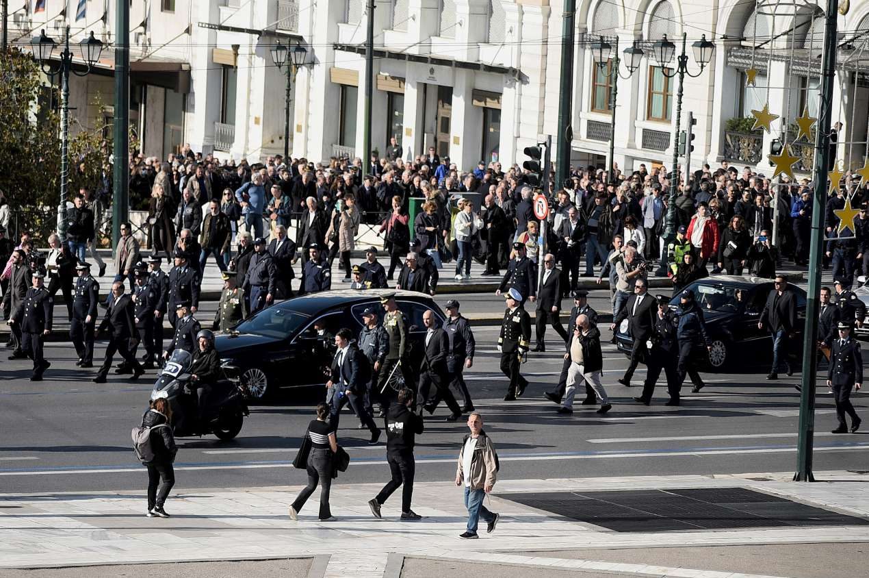 Μετά την τελετή στη Μητρόπολη, η πομπή κατευθύνθηκε πεζή προς το Α’ Νεκροταφείο Αθηνών για το τελευταίο κατευόδιο. Μέσω της Μητροπόλεως κατευθύνθηκε στη Βουλή και το Μνημείο του Αγνωστου Στρατιώτη, συνέχισε στην οδό Αμαλίας και από εκεί στην οδό Αναπαύσεως, μέχρι το Α’ Νεκροταφείο.