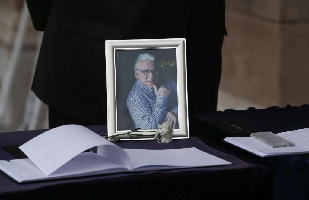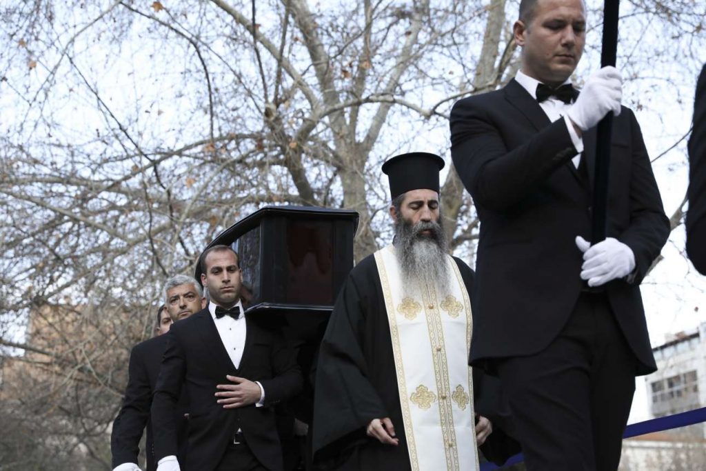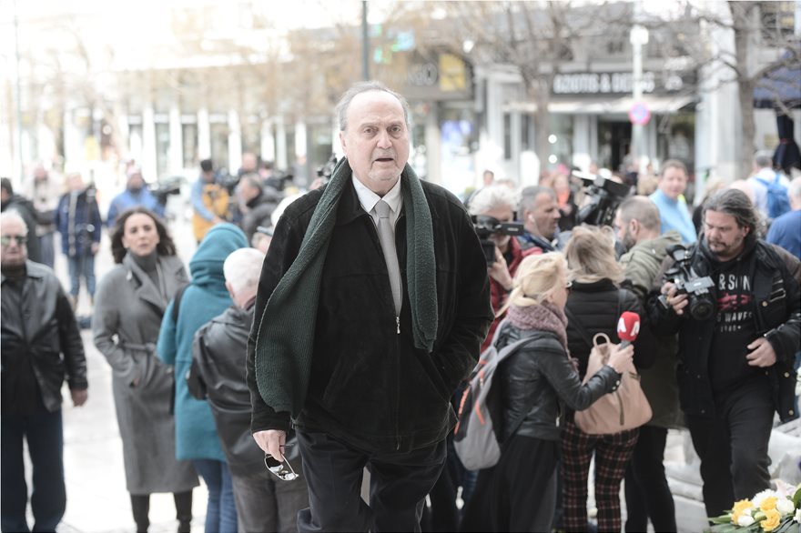 Η εξόδιος ακολουθία τελέστηκε στη Μητρόπολη Αθηνών, όπου η σορός του αγαπημένου ηθοποιού είχε τεθεί από την Πέμπτη σε λαϊκό προσκύνημα στο παρεκκλήσι του ιερού ναού.