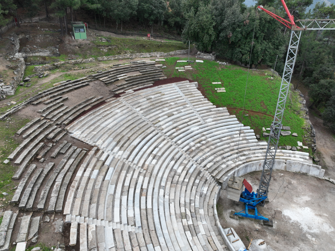 Στο επόμενο χρονικό διάστημα αναμένεται να απομακρυνθεί από το εσωτερικό του αρχαίου θεάτρου ο γερανός, με τη βοήθεια του οποίου έγινε η τοποθέτηση των εδωλίων, ώστε στη συνέχεια να ολοκληρωθεί και το έργο της επίστρωσης της ορχήστρας.