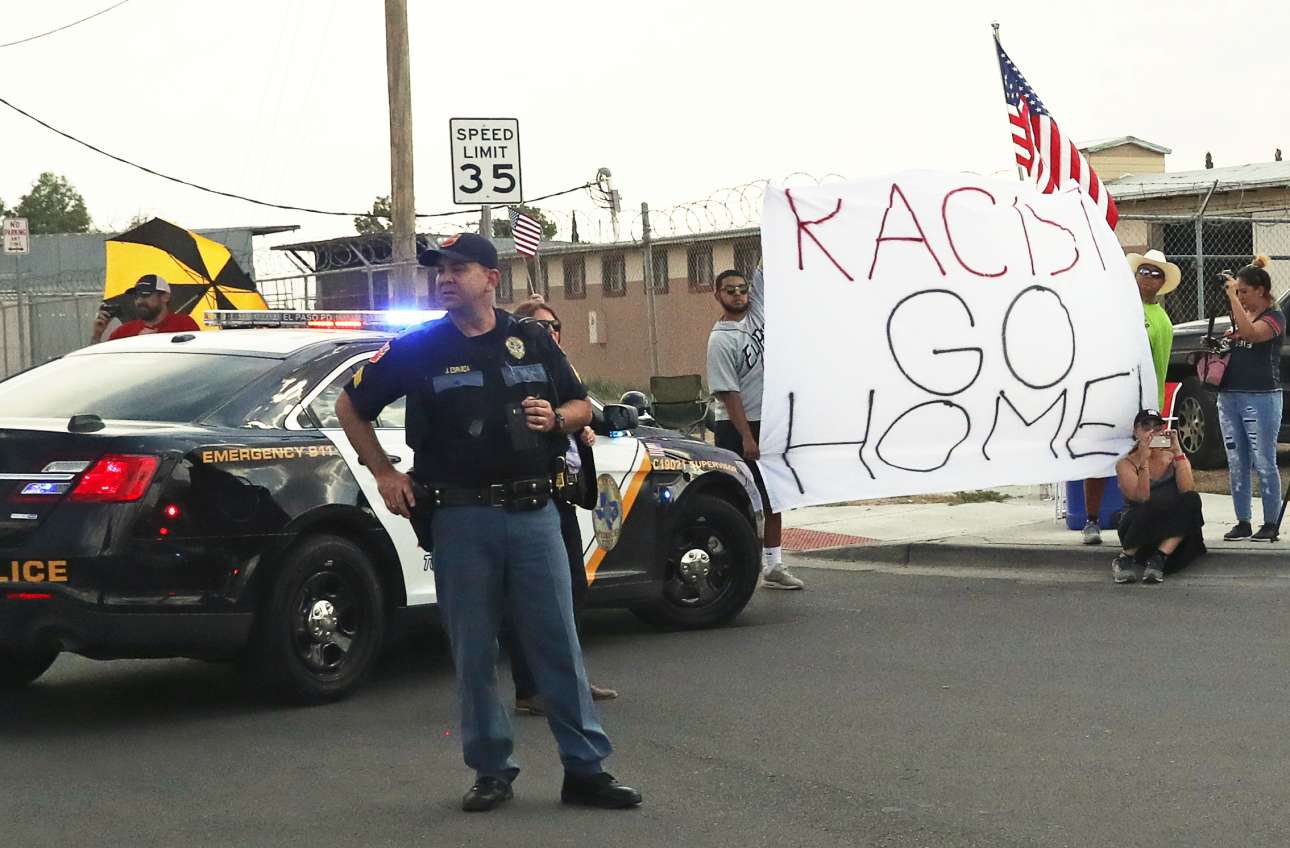 Τον περίμεναν όμως και διαδηλωτές – αυτούς φυσικά δεν τους είδε από κοντά. «Κάτω ο Τραμπ», «Προστατεύστε τα παιδιά και όχι τα όπλα», έγραφαν τα πλακάτ που κρατούσαν οι διαδηλωτές. Στο Ελ Πάσο του έγραφαν: «Ρατσιστή, πήγαινε σπίτι σου». Στο Οχάιο εμφανίστηκε και ένα μπαλόνι με το «βρέφος Τραμπ», αναφέρει το BBC.
