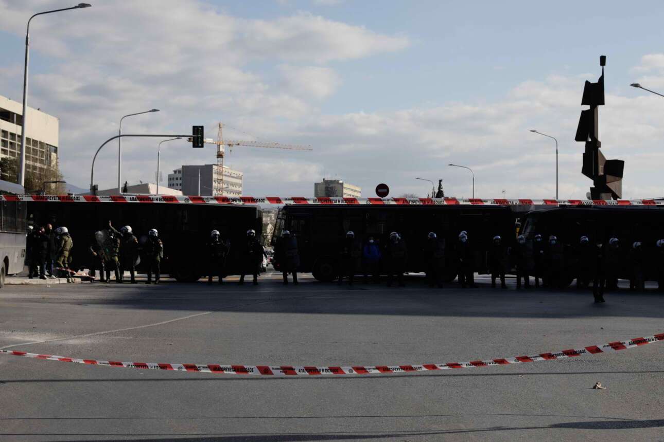 Τα μέτρα της αστυνομίας στο κέντρο της Θεσσαλονίκης ήταν δρακόντεια. Ελικόπτερο της ΕΛ.ΑΣ. πραγματοποιούσε συνεχείς πτήσεις και αστυνομικές δυνάμεις δημιούργησαν με οχήματα φραγμό στην Εγνατία, στην περιοχή γύρω από το Σιντριβάνι, προκειμένου η πορεία να μην κινηθεί προς το ΑΠΘ.