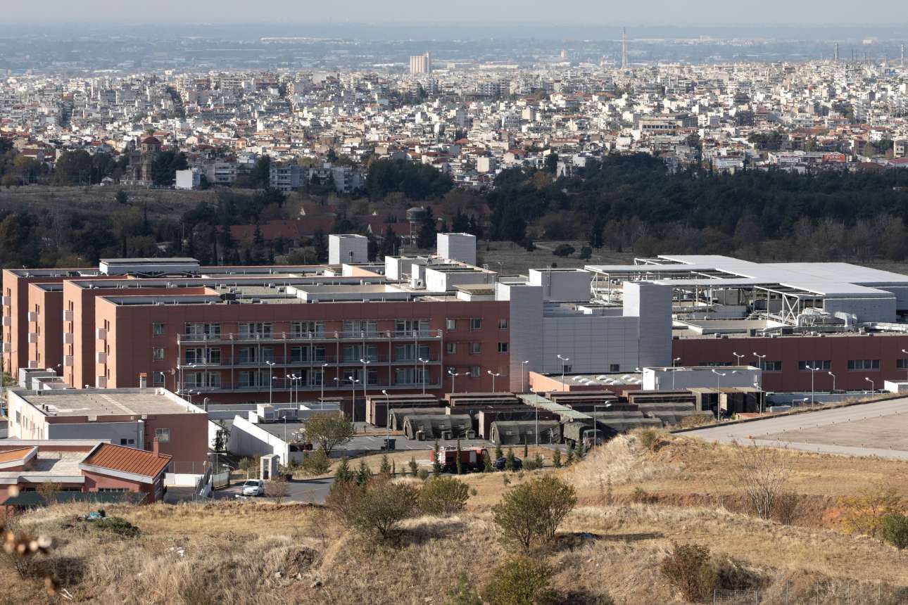 Χαρακτηριστικό της δραματικής κατάστασης που επικρατεί στα νοσοκομεία της Βόρειας Ελλάδας, είναι το νέο προσωρινό νοσοκομείο «εκστρατείας», αποκλειστικά για ασθενείς με COVID-19, που στήνεται από το Σάββατο, στον χώρο στάθμευσης του 424 Στρατιωτικού Νοσοκομείου της Θεσσαλονίκης.