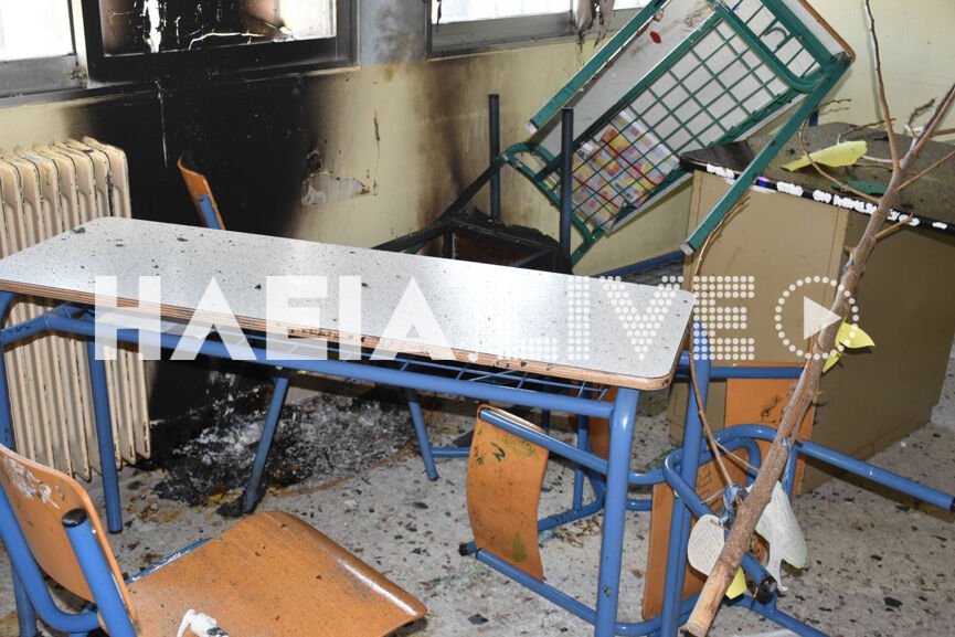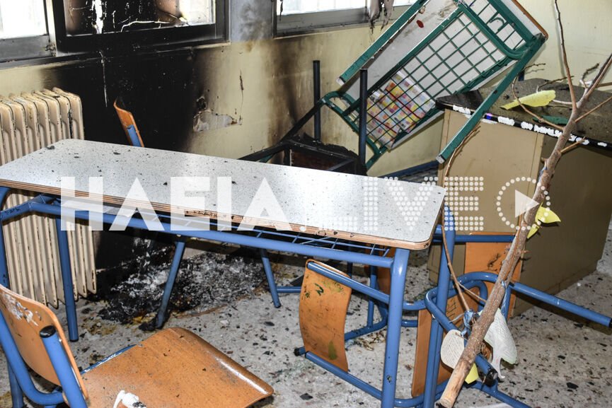 Εικόνα θλίψης και καταστροφής αντίκρισαν το πρωί της Παρασκευής η διευθύντρια και οι καθηγητές στο 4ο Γυμνάσιο Πύργου. Βάνδαλοι –δυστυχώς, όχι μόνο εξωσχολικοί, σύμφωνα με όλες τις εκτιμήσεις– είχαν διαλύσει τα πάντα σε τουλάχιστον δέκα αίθουσες του σχολείου, βάζοντας και φωτιά στα θρανία. Σπασμένες πόρτες και παράθυρα, καμένες κουρτίνες, αναποδογυρισμένα θρανία και παντού έντονη η μυρωδιά καμένου.