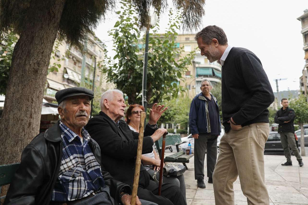 Μόλις έφτασε στην πλατεία ο Παύλος Γερουλάνος με κάζουαλ εμφάνιση και προτού κάνει τις πρώτες του δηλώσεις, προτίμησε να μιλήσει με τον κόσμο που καθόταν στα γύρω παγκάκια. Κάποιοι ηλικιωμένοι τού ευχήθηκαν καλή επιτυχία και άρχισαν να του λένε τα παράπονά τους για τη γειτονιά τους, η οποία δεν είναι πλέον στα καλύτερά της.