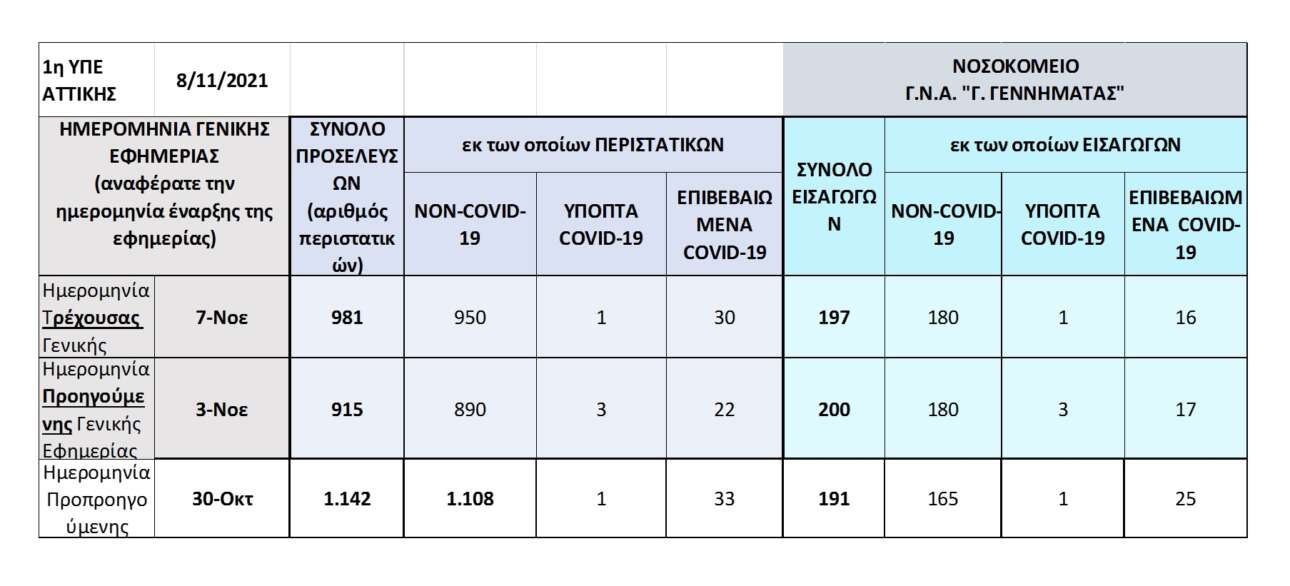 Εφημερίες Νοσοκομείου Γ.Ν.Α. «Γ. ΓΕΝΝΗΜΑΤΑΣ» (7 Νοεμβρίου, 3 Νοεμβρίου και 30 Οκτωβρίου)
