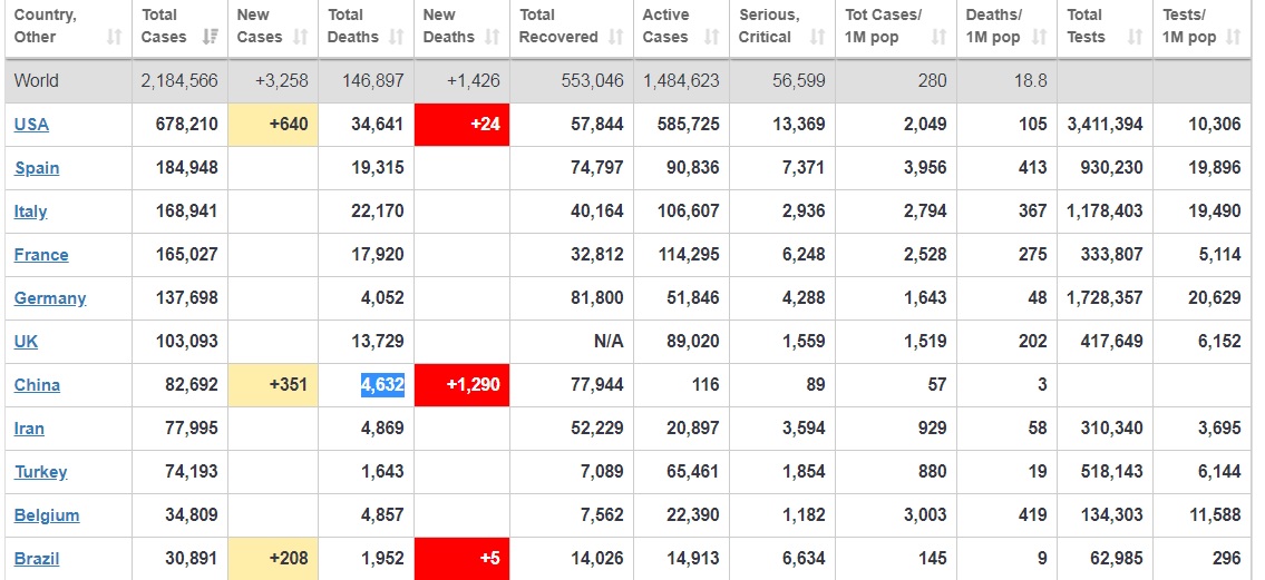 Πλέον, η Κίνα έχει συνολικά 82.692 καταγεγραμμένα περιστατικά και 4.632 νεκρούς, από 3.342 που ήταν μέχρι πριν από μία ημέρα, όπως γράφει o Guardian.