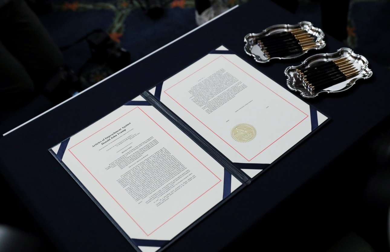 Το έγγραφο που υπέγραψε η Νάνσι Πελόζι, μετέφεραν στη Γερουσία, οι βουλευτές που έχουν οριστεί ως οι διαχειριστές της δίκης για λογαριασμό της Βουλής των Αντιπροσώπων.