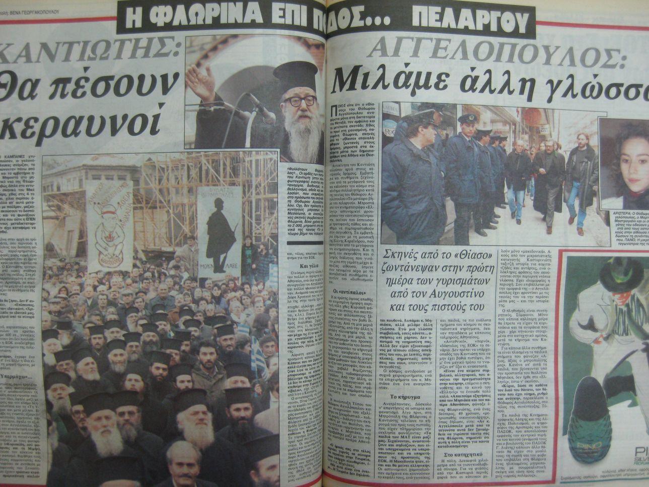 Τη δεκαετία του ’90, κατά τη διάρκεια των γυρισμάτων της ταινίας του Θεόδωρου Αγγελόπουλου «Το μετέωρο βήμα του πελαργού» στη Φλώρινα, ο τότε Μητροπολίτης Φλωρίνης, Αυγουστίνος Καντιώτης θεώρησε πως ήταν αντιχριστιανική και ανθελληνική. Κάλεσε τους κατοίκους της πόλης σε συγκεντρώσεις διαμαρτυρίας προκαλώντας ουκ ολίγα προβλήματα στα γυρίσματα της ταινίας.