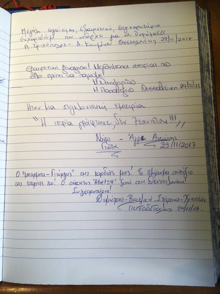 Το βιβλίο των επισκεπτών ξεχειλίζει από εθνική υπερηφάνεια και συγκίνηση. Τα σχόλια είναι εγκωμιαστικά, περιέχουν αναμνήσεις, ενθουσιασμό, νοσταλγία, αγάπη, θαυμασμό, προσδοκία.