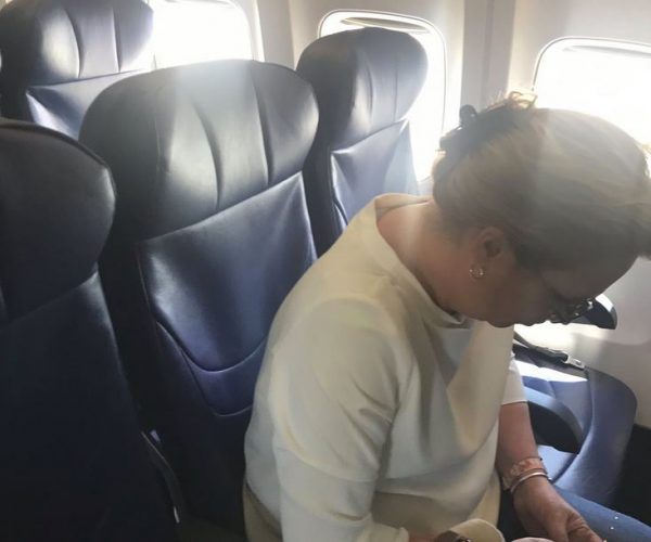 Όταν η υπουργός επιβιβάστηκε στο αεροσκάφος ο ίδιος επιβάτης φωτογράφησε την υπουργό και σχολίασε επικριτικά την κίνηση της.