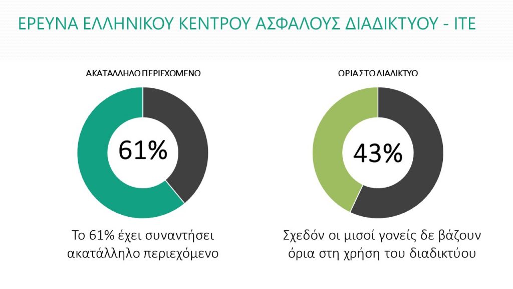 Υπάρχουν λύσεις; Η έρευνα, που θα παρουσιαστεί και θα αναλυθεί στην κεντρική εκδήλωση που διοργανώνει το Κέντρο την Τρίτη 5 Φεβρουαρίου, στην αίθουσα Ζακλίν Ντε Ρομιγί του υπουργείου Παιδείας, με αφορμή τον εορτασμό της Ημέρας Ασφαλούς Διαδικτύου (θα εορταστεί σε 140 χώρες ταυτόχρονα), δίνει μερικές: