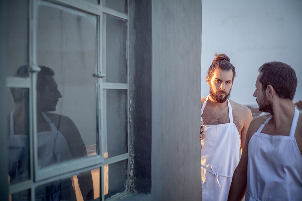 Ακόμα και τα κοστούμια που υπογράφει ο Απόστολος Μητρόπουλος, γίνονται σημεία στίξης στο κείμενο της Λαϊνά. Ρούχα ως γλυπτικές εγκαταστάσεις: μια κατασκευή μέσα από το πουκάμισο προκειμένου μια καμπαρντίνα να αιωρείται στην πλάτη του Λιλικάκη. Λες κι ένας αόρατος «άλλος» τον ακουμπά στην πλάτη, τα χνώτα τους να μπερδεύονται και καθώς κινείται στον χώρο η καμπαρντίνα διαγράφει τη δική της κίνηση. Η σκιά αυτού που λείπει. Και από την άλλη, το δερμάτινο μπουφάν με τα μανίκια να κρέμονται έξω από τα χέρια που φορά ο Λιόλιος. Τα χέρια γυμνά, τα χέρια που έχουν κάνει την πιο αποκρουστική και ταυτόχρονα την πιο βαθιά ερωτική πράξη σε αυτή που αποκαλούσε αγάπη μου – και η τροφή εδώ, αλλιώς.