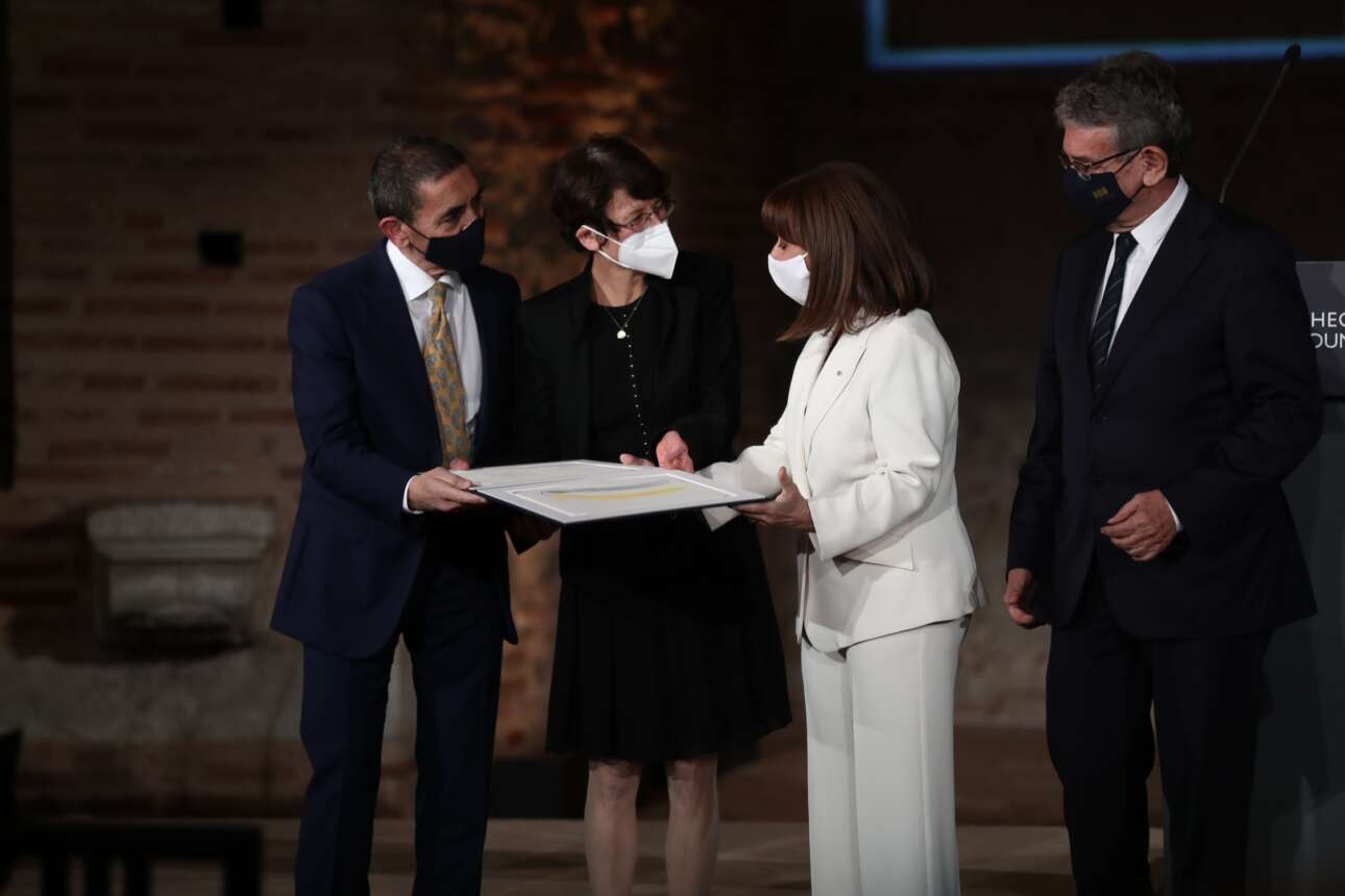 Την απονομή του βραβείου προς τους δύο σπουδαίους επιστήμονες έκαναν η Πρόεδρος της Δημοκρατίας Κατερίνα Σακελλαροπούλου και ο πρόεδρος της διοικούσας επιτροπής του Ιδρύματος «Αυτοκράτειρα Θεοφανώ», Σταύρος Ανδρεάδης.