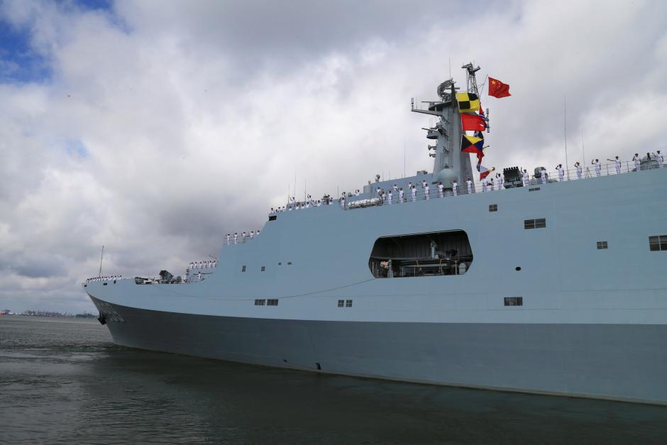 Οι κινέζοι στρατιώτες και ναύτες παρατεταγμένοι στο κατάστρωμα του πλοίου κατά την αναχώρησή τους για την Αφρική. Φωτογραφία: Reuters