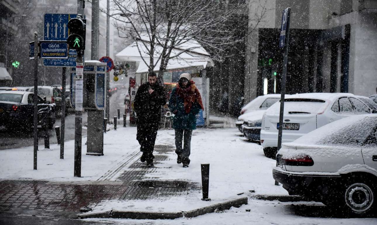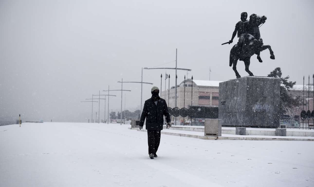 Από νωρίς την Τετάρτη χιονίζει στο κέντρο της Θεσσαλονίκης, όπου η θερμοκρασία ήταν στον -1 βαθμό Κελσίου.