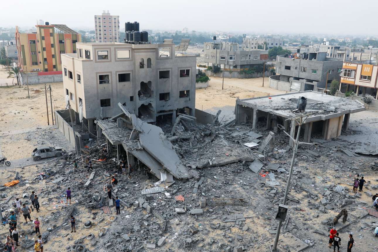 Στη Ράφα, δεκάδες άνθρωποι σχημάτιζαν ουρά μπροστά από ένα αρτοποιείο ή περίμεναν να γεμίσουν μπιτόνια με νερό, ενώ άλλοι έψαχναν στα ερείπια κατεστραμμένων σπιτιών.