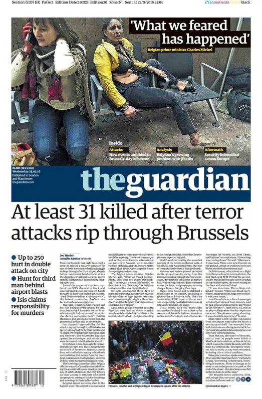 Ο τρόμος επέστρεψε στην Ευρώπη λίγους μήνες μετά την τραγωδία στο Παρίσι, με τη σφαγή στο Μπατακλάν, την επίθεση στο Σταντ ντε Φρανς και τις επιμέρους εκτελέσεις σε μαγαζιά της γαλλικής πρωτεύουσας. Αυτή τη φορά ήταν οι Βρυξέλλες που αιματοκυλίστηκαν χθες Τρίτη, 22 Μαρτίου, από τρεις τζιχαντιστές (δύο αδέρφια που ανατινάχθηκαν με τα γιλέκα με εκρηκτικά που φορούσαν και έναν τρίτο βέλγο υπήκοο που καταζητείται).
