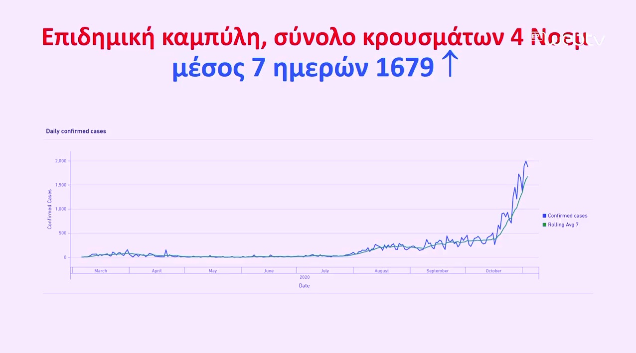 Κατακόρυφη είναι η άνοδος της επιδημικής καμπύλης και αυτός είναι ο λόγος που τίθεται η χώρα σε κατάσταση συναγερμού και ενεργοποιείται και πάλι το μέτρο του lockdown. Αυτό υποστήριξε την Πέμπτη ο καθηγητής Λοιμωξιολογίας και υπεύθυνος του υπουργείου Υγείας για τον κορονοϊό, Σωτήρης Τσιόδρας, ο οποίος έχοντας δίπλα του τον Κυριάκο Μητσοτάκη –και αφού ο τελευταίος είχε ανακοινώσει το εθνικό «λουκέτο» ως τις 30 Νοεμβρίου– κλήθηκε να εξηγήσει γιατί η κυβέρνηση έλαβε αυτά τα μέτρα, ύστερα από τη σχετική εισήγηση των επιστημόνων.