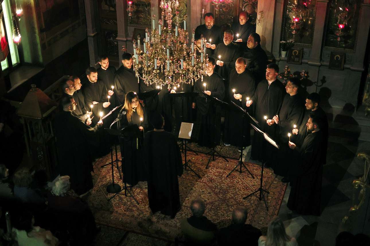 Οι ύμνοι της Μεγάλης Τρίτης, εμπνευσμένοι μελωδικά κυρίως από τον Γεώργιο Ραιδεστηνό Β΄ (Άρχοντα Πρωτοψάλτη του Πατριαρχικού Ναού) και υμνογραφικά από την Κασσιανή Μοναχή («ἡ ἐν πολλαῖς ἁμαρτίαις περιπεσοῦσα γυνή»), ερμηνεύονται από τη χορωδία musicAeterna Byzantina, η οποία αποτελείται από 18 πτυχιούχους (Έλληνες και Κύπριους) βυζαντινής μουσικής, με καλλιτεχνικό διευθυντή τον Θόδωρο Κουρεντζή. Αφήγηση: Αμαλία Μουτούση