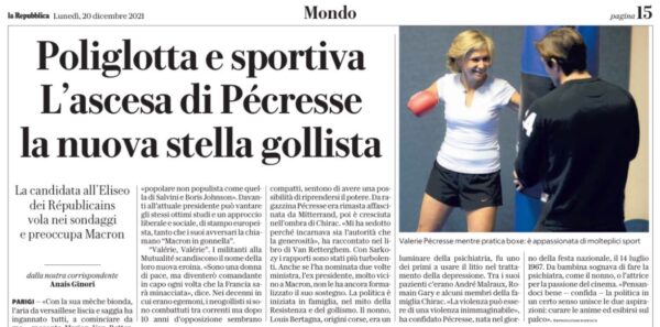 Πήρε άνετα το χρίσμα των γάλλων Ρεπουμπλικανών, του συρρικνωμένου εδώ και χρόνια δεξιού κόμματος με τις γκολικές ρίζες, ώστε να διεκδικήσει την προεδρία της Γαλλίας. Βέβαια, απέναντί της έχει και παλαιά και καινούργια «θηρία» του γαλλικού εθνικισμού, τη Μαρίν Λεπέν και τον Ερίκ Ζεμούρ, όπως και τα μέχρι στιγμής προγνωστικά, όμως η Βαλερί Πεκρές είναι οπωσδήποτε το νέο αστέρι των γκολικών έγραψε η ιταλική Repubblica. Και δεν λάμπει σαν άστρο μόνο η Βαλερί, ανεβαίνει στα γκάλοπ κιόλας: «Πλέον έχει καλές πιθανότητες να βρεθεί στον δεύτερο γύρο και να κερδίσει τον Μακρόν».