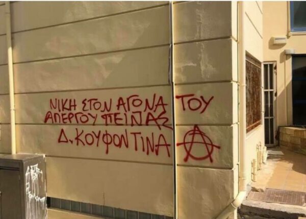 «Σε συνέχεια των τραμπούκικων επιθέσεων από υποστηρικτές του καταδικασμένου για 11 δολοφονίες Δ. Κουφοντίνα, στόχος αυτή τη φορά έγινε το πολιτικό γραφείο του υφυπουργού Αθλητισμού Λευτέρη Αυγενάκη στο Ηράκλειο.