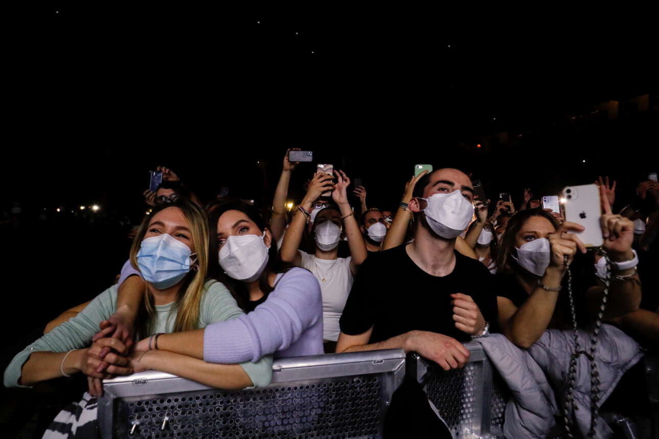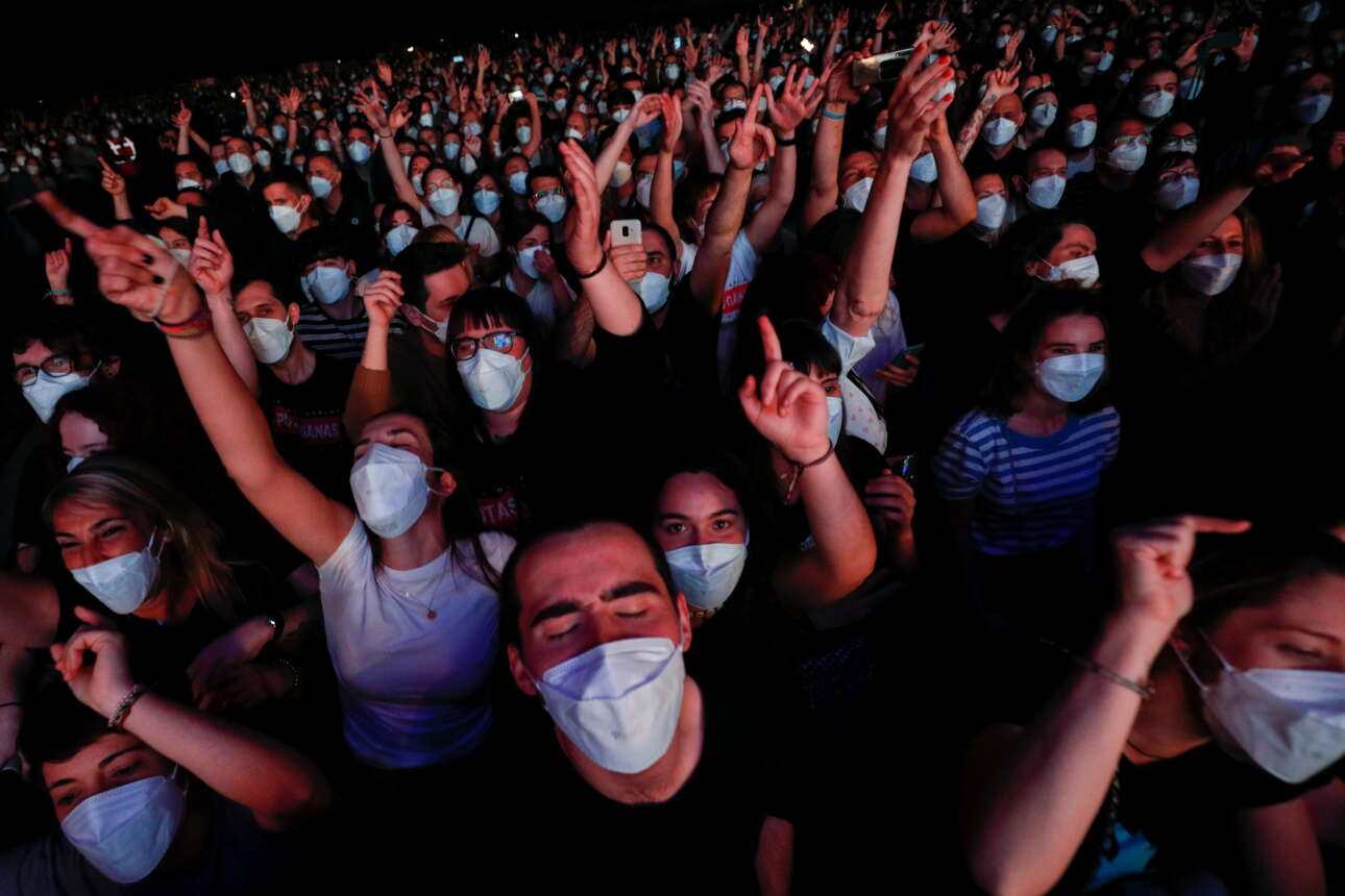 Περίπου 5.000 άτομα παρακολούθησαν το βράδυ του Σαββάτου μια συναυλία ροκ μουσικής (για την οποία τα εισιτήρια, αξίας 23 με 28 ευρώ, είναι εξαντληθεί) που έγινε με την άδεια των ισπανικών Αρχών, οι οποίες εξακολουθούν να απαγορεύουν τις μεγάλες συγκεντρώσεις για την αποτροπή διάδοσης της Covid.