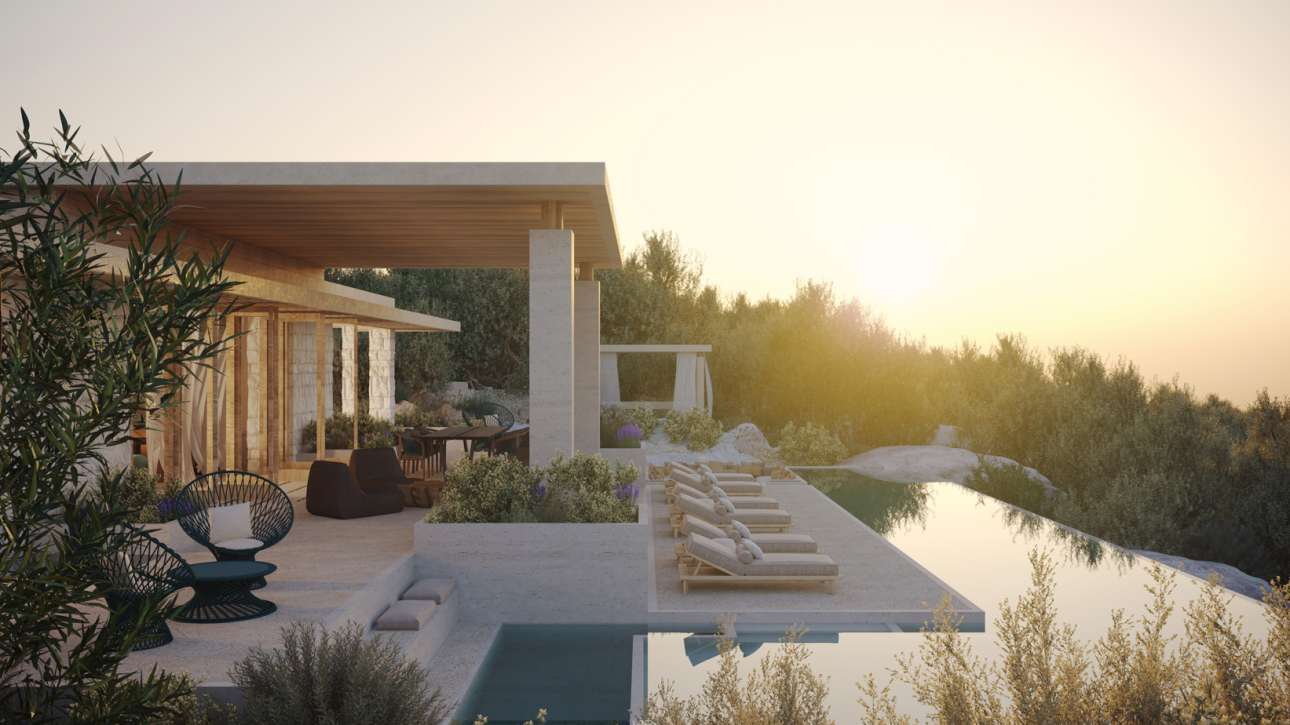 Όταν συνάντησαν τη Ρία Βογιατζή των Elastic Architects, αισθάνθηκαν ότι υπήρχε ταύτιση στο πώς οραματίζονταν τον χώρο. «Υπάρχει μια γλυπτική διάθεση. Προσεγγίσαμε το έργο δωρικά, πλήρως ενταγμένο στο τοπίο», εξήγησε η αρχιτέκτονας. «Δημιουργήσαμε ένα έργο που βασίζεται στις εμπειρίες. Πολυτέλεια δεν είναι μόνο τα “χρυσά πόμολα”», πρόσθεσε.