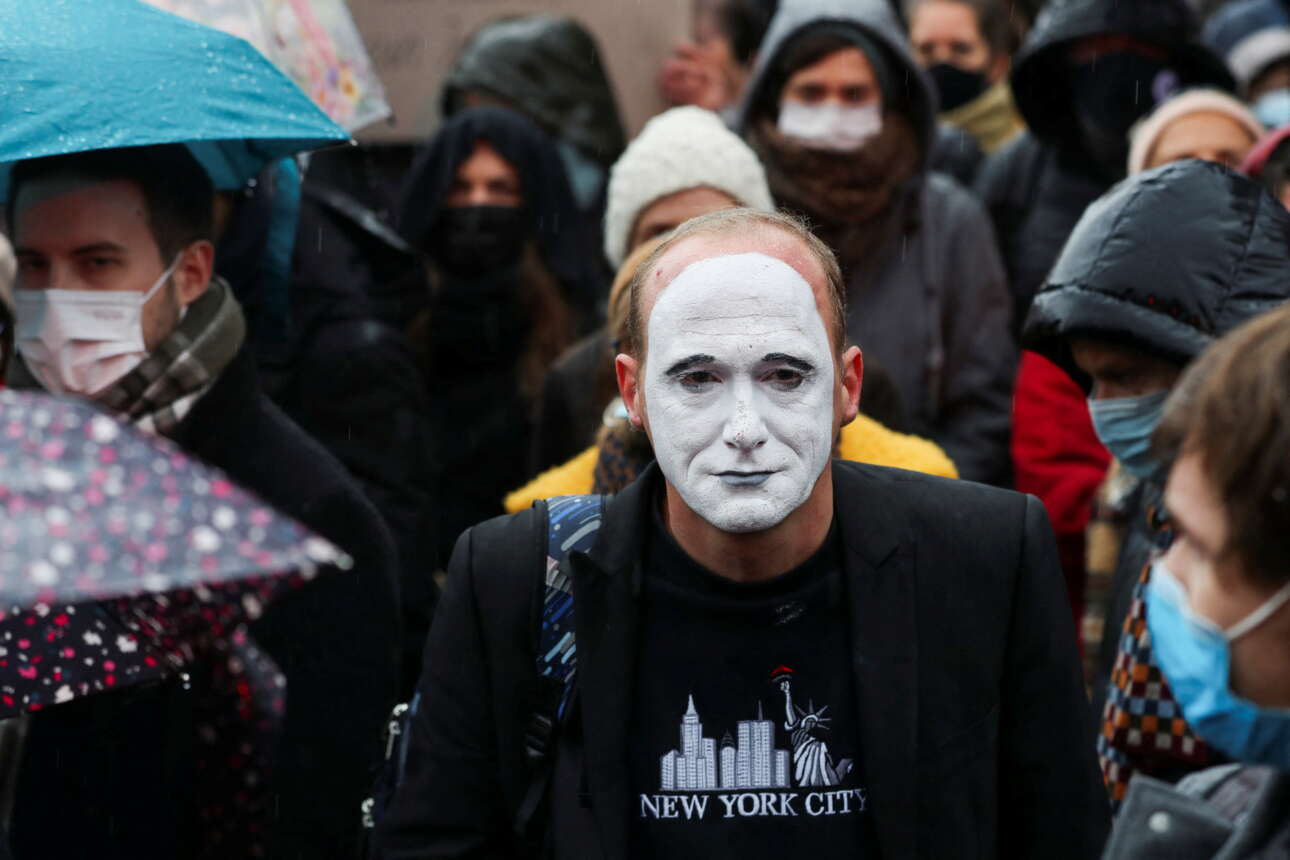 Εργαζόμενοι στον χώρο του θεάματος κατέβηκαν, παρά τη βροχή, στους δρόμους των Βρυξελλών την Κυριακή, προκειμένου να διαμαρτυρηθούν για την απόφαση της κυβέρνησης του Βελγίου να κλείσει χώρους πολιτισμού ώστε να σταματήσει τη μετάδοση της μετάλλαξης Ομικρον.